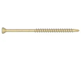- Teilgewinde: Das Gewinde zieht die Diele fest und dauerhaft an die Unterkonstruktion heran und verhindert lästiges Knarren beim Darüberlaufen.