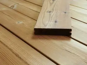 Beschreibung Kanadische Lärche mit hoher Rohdichte – robuster als europäische Lärche Kammergetrocknet (KD) – reduzierte Rissbildung & gute Maßhaltigkeit Grob/fein geriffelte Oberfläche – rutschhemmend & wendbar Starkes Format: 27 x 143 mm – stabil & belastbar für viele Einsatzbereiche Warme, rötlich-gelbe Farbgebung – natürlich & edel zugleich Für private Terrassen, Wege & Sitzdecks – langlebig & preisattraktiv Technische Details Diese Terrassendielen aus kanadischer Lärche zeichnen sich durch ihre hohe Festigkeit und ihr dichtes Holzbild aus – deutlich härter und formstabiler als europäische Lärche. Die Dielen sind kammergetrocknet (KD), was das Quell- und Schwindverhalten deutlich reduziert und die Verarbeitung vereinfacht. Das Profilmaß beträgt 27 mm Stärke und 143 mm Breite – ideal für tragfähige Terrassenkonstruktionen mit geringer Durchbiegung. Die Oberfläche ist beidseitig nutzbar: Eine Seite ist grob, die andere fein geriffelt – je nach gewünschter Optik und Rutschhemmung. Die geriffelte Struktur unterstützt den Wasserablauf und minimiert Ausrutschgefahr, z. B. bei Regen. Vorteile Kanadische Lärche bietet ein attraktives Preis-Leistungs-Verhältnis im Segment der dauerhaften Nadelhölzer. Durch die KD-Trocknung sind die Dielen maßhaltiger und weniger anfällig für Verzug oder Rissbildung. Die grob/fein geriffelte Oberfläche ist funktional und flexibel – ideal für barfuß genutzte Bereiche oder leicht geneigte Flächen. Das warme, rötlich-gelbe Farbspiel verleiht der Terrasse eine natürliche, lebendige Ausstrahlung. Die Dielen lassen sich mit Edelstahlverschraubung sicher montieren. Bei fachgerechter Verlegung mit ausreichender Hinterlüftung und Abstand zum Erdreich erreichen die Dielen eine lange Nutzungsdauer im privaten Außenbereich. Pflege Um die ursprüngliche Farbgebung zu erhalten, empfiehlt sich 1–2× jährlich eine Behandlung mit pigmentiertem Terrassenöl. Ohne Pflege vergraut die Oberfläche gleichmäßig silbergrau. Die Reinigung erfolgt mit Wasser und Schrubber – Hochdruckreiniger sind nicht empfohlen. Schutz durch konstruktiven Holzschutz (z. B. Abstandshalter, Gefälle) verlängert die Lebensdauer zusätzlich.