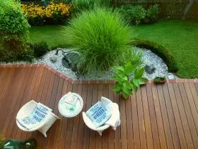 Allgemeines: Terrassendielen aus Ipe zählen zu den qualitativ besten Holzdielen überhaupt. Noch härter, noch dauerhafter, noch widerstandsfähiger – Ipe hält auch extremste Beanspruchungen aus. Ipe-Holz stammt vom brasilianischen Lapacho-Baum und ist eines der härtesten Hölzer der Welt. Terrassendielen aus Ipe sind extrem witterungsbeständig und besonders resistent gegen Insekten und Pilze. Wegen seiner hohen Dichte nimmt es Feuchtigkeit nur minimal auf und verändert sich kaum. Auch optisch erfüllt Ipe höchste Ansprüche: Die leicht olivschimmernde Farbe und die feine, gleichmäßige Maserung verleihen dieser Holzart ein besonders edles Aussehen. Es ist eines der farbenfrohsten Hölzern, die im Außenbereich verwendet werden. Das Farbspektrum geht von gelb über grün, hellbraun/braun bis ins dunkle Schwarz. Ipe blutet nur sehr wenig aus (so wird das Auswaschen der farbigen Holzinhaltsstoffe genannt) und hat ein geringes Quell- und Schwindverhalten. Deshalb können Sie die Terrassendielen ideal als Poolumrandung oder für die Gestaltung Ihres Teichbereichs verwenden. Oberfläche: Das ausgewählte Profil bestimmt die später sichtbare Oberfläche der Terrassendielen. Sie haben für gewöhnlich die Wahl zwischen einem glatten, fein geriffelten oder grob geriffelten Profil. Für welches Sie sich entscheiden, hängt von Ihrem persönlichen Geschmack ab. Eine glatte Sichtseite ist nicht rutschiger als eine geriffelte und hat außerdem den Vorteil, dass die Dielen schneller trocknen und leichter zu reinigen sind, da das Wasser zu allen Seiten abfließen und sich kein Moos und Dreck in den Rillen sammeln kann. Sie können beim Aufbau der Terrasse beide Seiten als Sichtseite wählen, d.h. Sie können zwischen zwei Seiten wählen, falls Ihnen die eine Seite nicht zusagt aufgrund von Wechseldrehwuchs oder des Farbspiels. Ein weiterer großer Vorteil einer glatten Diele beinhaltet die Möglichkeit das Holz abzuschleifen. So können Sie leichte Beschädigungen, die sich über die Jahre ergeben können, einfach ausbessern oder gleich die ganze Terrasse abschleifen, wenn diese angegraut oder vergraut sein sollte. Eine glatte Oberfläche verleiht Ihrer Holzterrasse zudem eine edle Parkettoptik. Verbauung: Trotz seiner enormen Festigkeit lässt sich Ipe mit Hartmetall-Werkzeugen gut bearbeiten. Wenn Sie Ihre Holzterrasse selbst bauen möchten, ist die Wahl dieser Holzart genau richtig. Für die Befestigung verwenden Sie unbedingt Material aus rostfreiem Edelstahl (V2A bzw. V4A). Einfache, verzinkte Materialien reagieren mit einigen Inhaltsstoffen des Holzes. Dies kann zu unschönen Verfärbungen und dunklen Laufspuren auf dem Holz führen, die sich schlecht oder nicht mehr entfernen lassen. Bei einer nicht-sichtbaren Befestigung (Clipse oder Halter) bitte auf Edelstahlschrauben achten. Wie bei allen Harthölzern empfehlen wir dringend, die Löcher für die Befestigung vorzubohren. So nehmen Sie dem Holz die Spannung, die durch die Schrauben entsteht, und vermeiden Splittern und Risse. Pflege: Zur Pflege Ihrer Holzterrasse fegen Sie die Dielen regelmäßig ab und ölen Sie diese ein bis zweimal im Jahr. Durch das Öl werden die Fasern des Holzes gesättigt und eine Wasseraufnahme verringert, sodass das Holz weniger quellt und schwindet. So beugen Sie der Rissbildung vor, welche gerade im Sommer durch die starken Temperaturschwankungen auftreten kann. Wenn eine Terrasse frisch verlegt wurde, sollte diese 3-4 Wochen bewittert werden, bevor man diese ölt, damit sich die Poren des Holzes öffnen und die Inhaltsstoffe ausgespült werden. So kann das Holz das Öl besser aufnehmen. Verwenden Sie bei Bedarf einen Holz-Entgrauer oder einen Terrassenreiniger. Bei Moos- und Algenbewuchs empfehlen wir die Reinigung mit einem speziellen Grünbelag-Entferner. Bitte verwenden Sie zum Abschrubben der Dielen keine Drahtbürste, sondern einen weichen Schrubber oder eine Wurzelbürste. Nach der Reinigung empfehlen wir Ihnen, die Holzterrasse mit einem pigmentierten Terrassenöl zu behandeln. Damit verzögern Sie die Vergrauung und Ihre Terrassendielen behalten länger ihren natürlichen Holzfarbton.