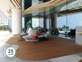 Nach der Trocknung und fachgerechten Verarbeitung ist Bambus sehr hart, langlebig und widerstandsfähig. Die einzigartige Maserung verleiht den Terrassendielen einen rustikalen und natürlichen Charme, der deinen Außenbereich optisch aufwertet. Trotz der großen Härte lässt sich das Material gut bearbeiten und ist bei entsprechender Pflege absolut witterungsbeständig. Damit wird Bambus zur echten, nachhaltigen Alternative zu tropischen Holzarten.