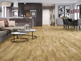 - Geringeres Arbeiten des Holzes im Vergleich zu Massivparkett, was die Fugenbildung reduziert.
