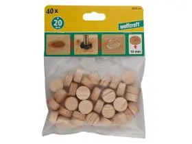 Bei uns im Shop findest du die Konusplättchen aus hellem Fichtenholz in verschiedenen Durchmessern, sodass du für jede Schraube und jedes Astloch das passende Maß parat hast.