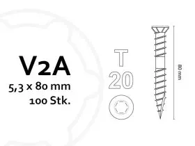Beschreibung Die KAHRS Terrassenschrauben Professional in der Größe 5,3 x 80 mm sind speziell für die sichere Befestigung von Terrassendielen auf Unterkonstruktionen aus Holz, Bambus und WPC entwickelt. Der hochwertige V2A-Edelstahl macht die Schrauben besonders korrosionsbeständig und langlebig – ideal für den langfristigen Einsatz im Außenbereich. Der TX20-Torx-Antrieb sorgt für eine optimale Kraftübertragung und verhindert ein Abrutschen beim Verschrauben. Vorbohren wird empfohlen, insbesondere bei Hartholz und Bambus, um Spannungen zu reduzieren und ein sauberes Schraubbild zu gewährleisten. Die Packung enthält 100 Schrauben und eignet sich hervorragend für größere Terrassenprojekte. Vorteile Für Holz-, Bambus- und WPC-Unterkonstruktionen – perfekt für den Terrassenbau V2A-Edelstahl – rostfrei und widerstandsfähig gegen Witterungseinflüsse TX20-Torx-Antrieb – sichere und effiziente Kraftübertragung Empfohlenes Vorbohren – für eine spannungsfreie und präzise Montage, besonders bei Hartholz 100 Stück pro Packung – ideal für größere Terrassenprojekte