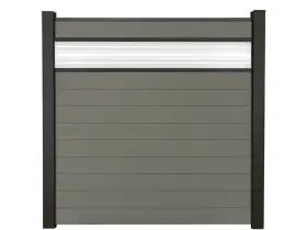 KAHRS Solid BPC-Zaunset, Grau, Glaseinsatz 30 cm, 1,9x180x180 cm, ohne Pfosten